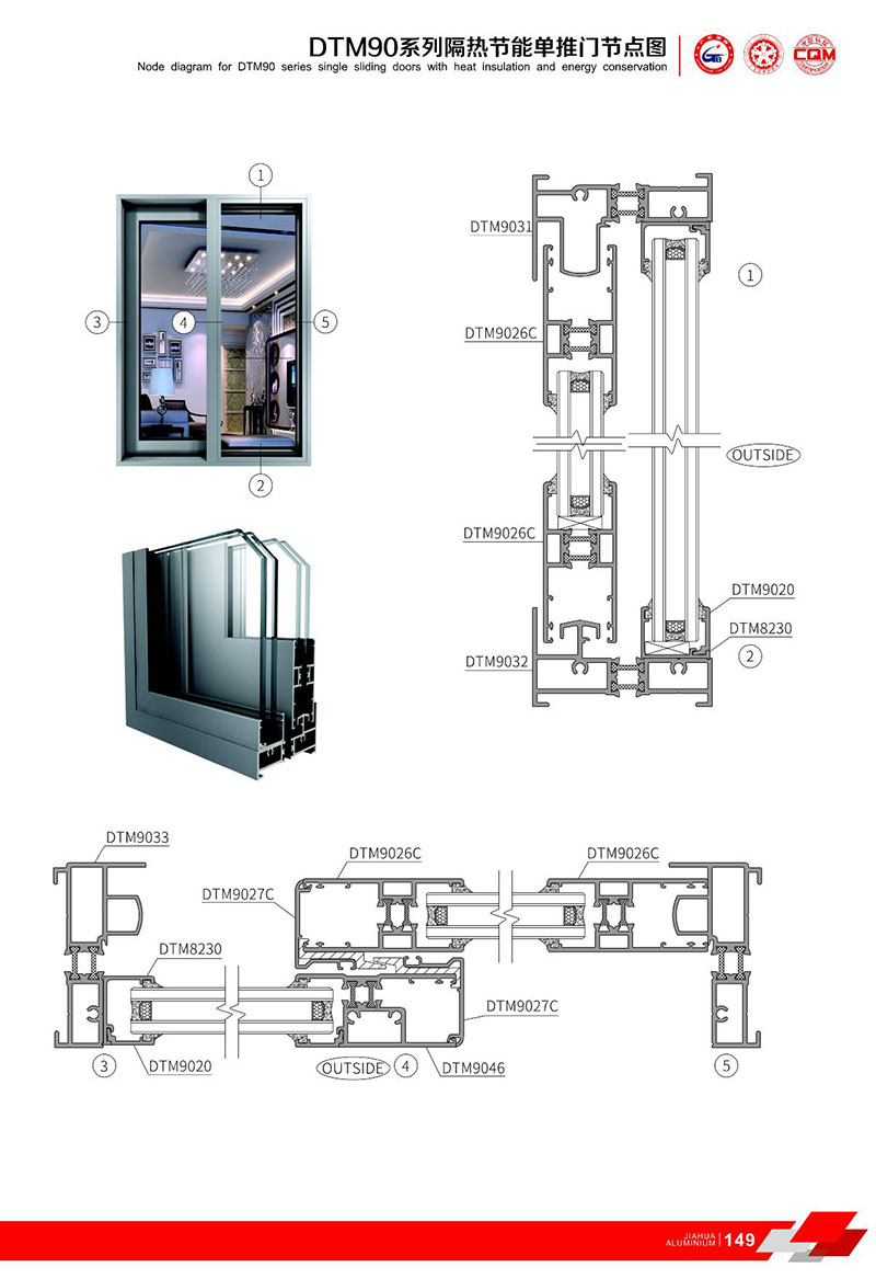 鋁型材規格型號:DTM90推拉系列