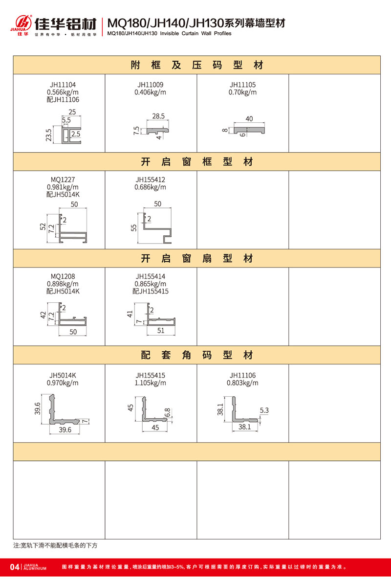 鋁型材規格型號:MQ180/JH140/JH130 B