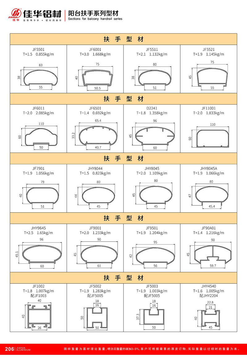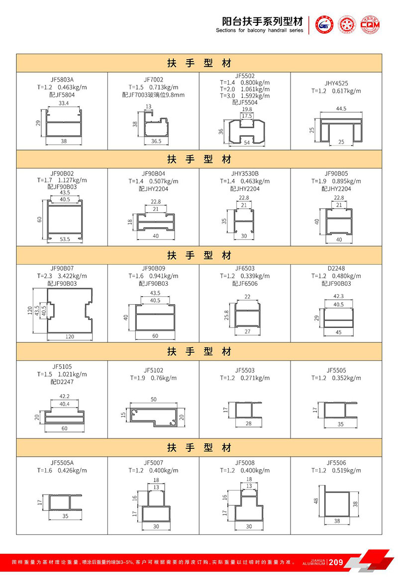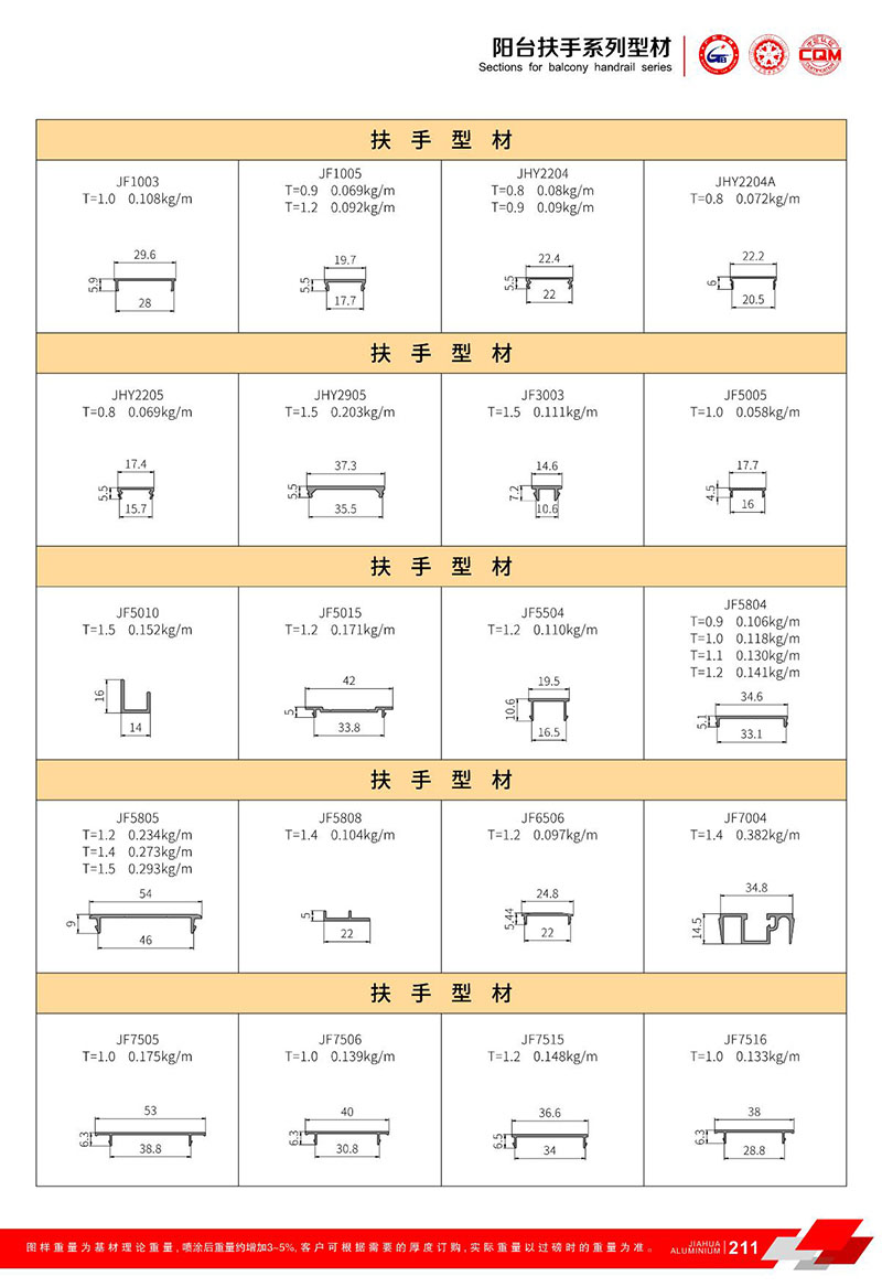 鋁型材規格型號:陽臺扶手 A