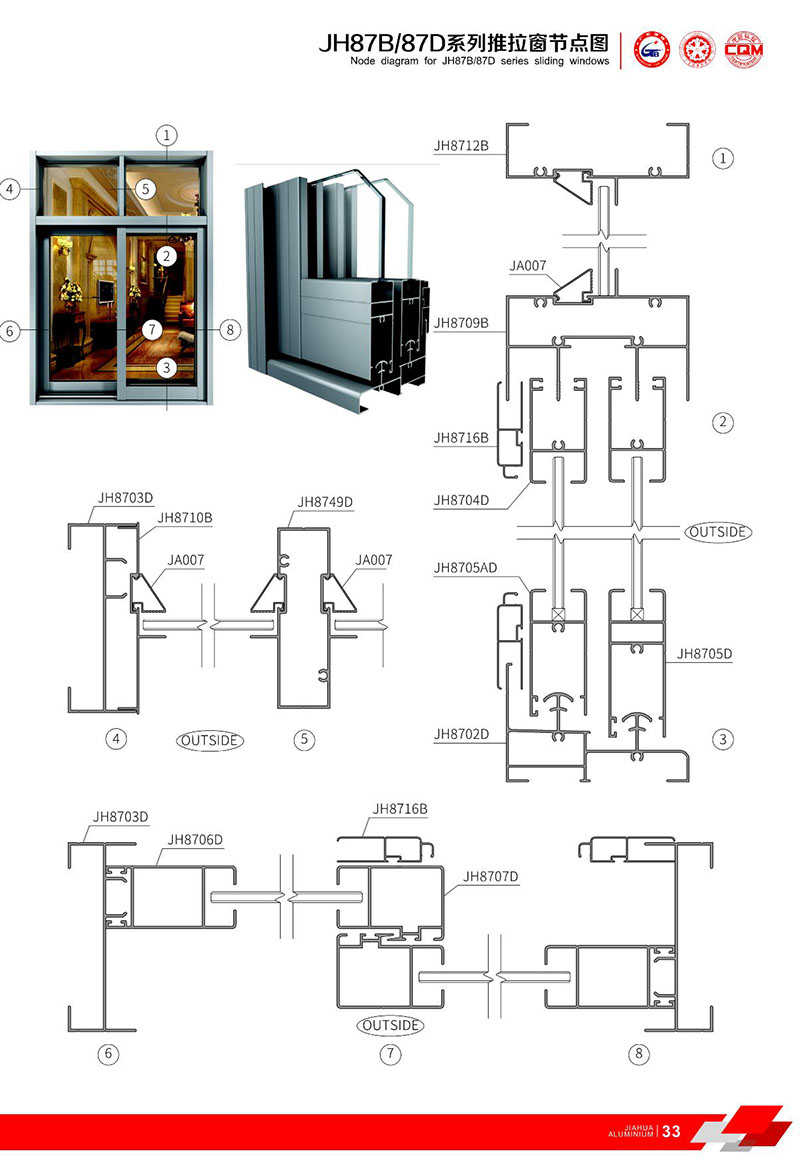 鋁型材規(guī)格型號(hào):JH87B/87D 一