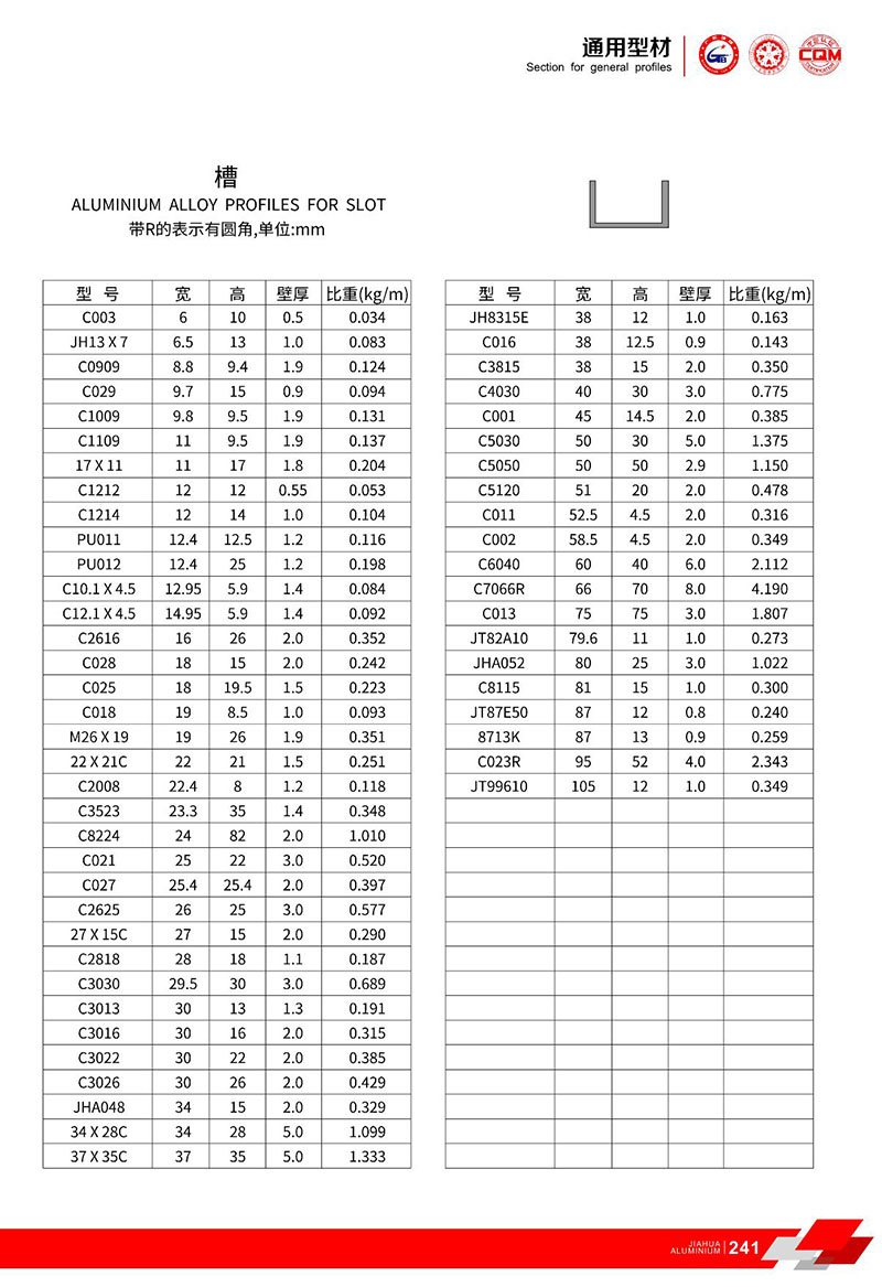鋁型材規格型號:槽鋁型材