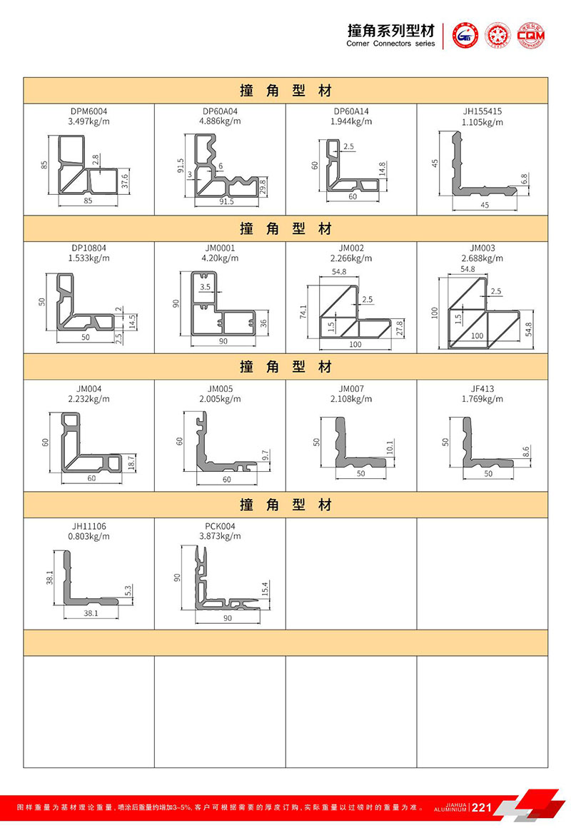 鋁型材規格型號:撞角型材